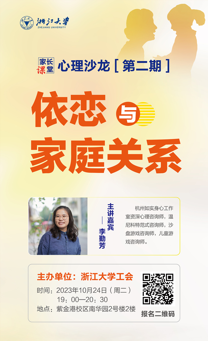 为了更好地帮助教职工提升科学育儿能力,促进家庭教育、和谐家庭,校工会推出“家长课堂”系列课程,将围绕家庭养育、亲子关系、自我成长三大主题展开。本期沙龙我们将一起探讨依恋与家庭关系,依恋是一种人际关系的心理基础模型,是亲密关系的基底色,会影响个体一生对人际关系的处理方式,通过了解自身及家人的依恋类型,从而理解自身及家人以特定的方式相互联结的意义,并找到相互理解、缓解冲突矛盾的相处方式。具体通知如下: