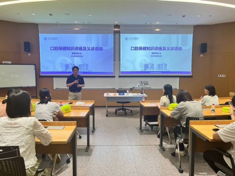 下午2时,口腔健康科普讲座暨义诊活动如期举行。杭州口腔医院集团副院长林海燕针对牙周病、龋齿等常见问题进行了深入浅出的讲解,并介绍了现代口腔修复技术与日常护理方法。义诊环节中,专业医师为教职工提供了免费的口腔检查和一对一咨询,并发放了包含牙膏、牙线、护牙卡等实用物品的口腔保健礼包,受到老师们的一致好评。