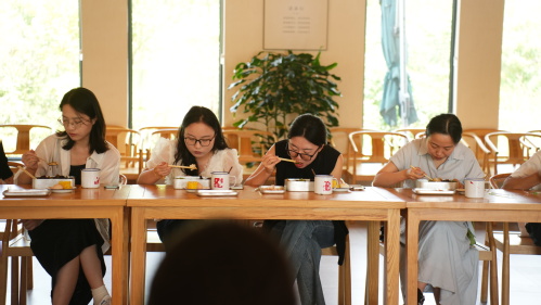 在浙大建德办学旧址,老师们回顾了当年浙大西迁的艰苦历程,品尝了忆苦思甜饭,通过西迁旧物、历史影像、场景复原等展陈作品,切身体悟浙大师生在梅城的学习环境和奋斗历程。在浙大西迁校史学习中,老师们们深受感触,纷纷表示将认真总结领会竺可桢校长在西迁途中以亲身经历提出并践行的求是精神。