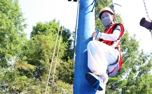 户外运动培训活动现场气氛热烈。在教练的指导下,新教工们通过随机分组,推选队长,通过确定队名、队歌、口号、队旗等环节迅速完成破冰团建。大家各尽其能、各显神通,群策群力探寻最佳解决方案和竞技技巧。