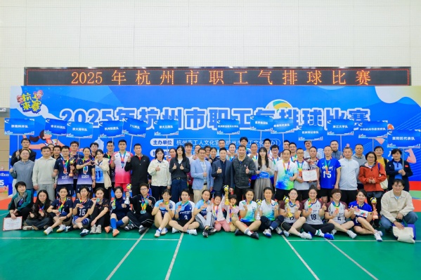 初冬杭城,寒意挡不住运动热情;赛场角逐,拼搏彰显职工风采。2025 年 11 月 15 日至 16 日,由杭州市工人文化宫主办的“杭工来赛”系列2025年杭州市职工气排球比赛在市职工文化中心圆满举行。来自上城、富阳、临安、建德等区、县(市)以及公安、司法、检察、铁路、教育、医疗等在杭机关企事业单位的27支代表队、近300余名选手齐聚一堂,上演了一场场精彩绝伦的体育竞技盛宴。