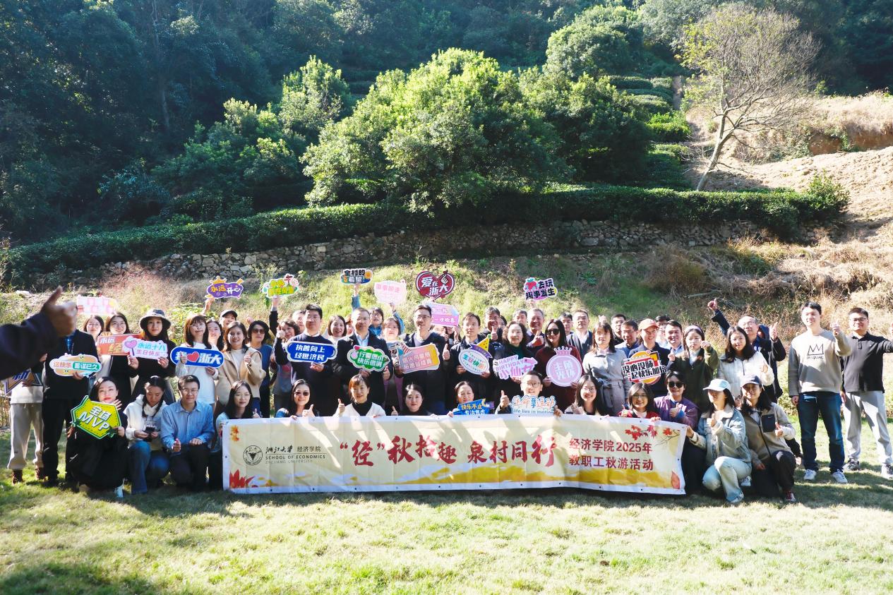 秋光漫洒乡野,暖意凝聚心间。近日,经济学院“‘经’秋拾趣 泉村同行”教职工秋游活动在萧山所前镇三泉王村顺利举行。院长苗建军、党委书记王义中、副院长张川川、党委副书记兼工会主席李济沅与全院70余位教职工共同参与了此次秋日之行。活动由学院党政办主任、工会副主席沈颖达主持。