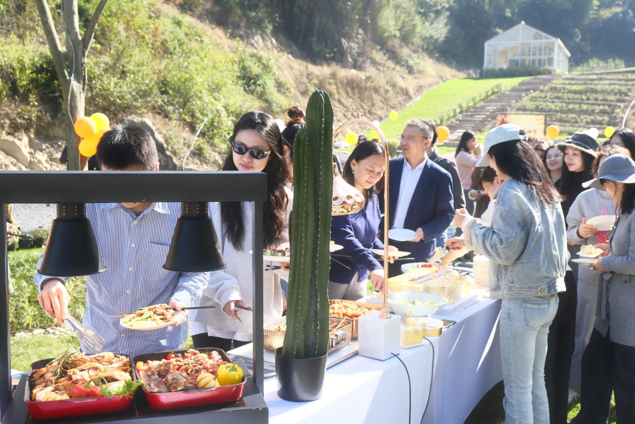 午餐时分,现烤竹筒饭的清香萦绕鼻尖;蒸得粉糯的番薯,则以甘甜滋味滋润心田。老师们围坐畅谈,在美食与笑语中拉近了彼此距离。