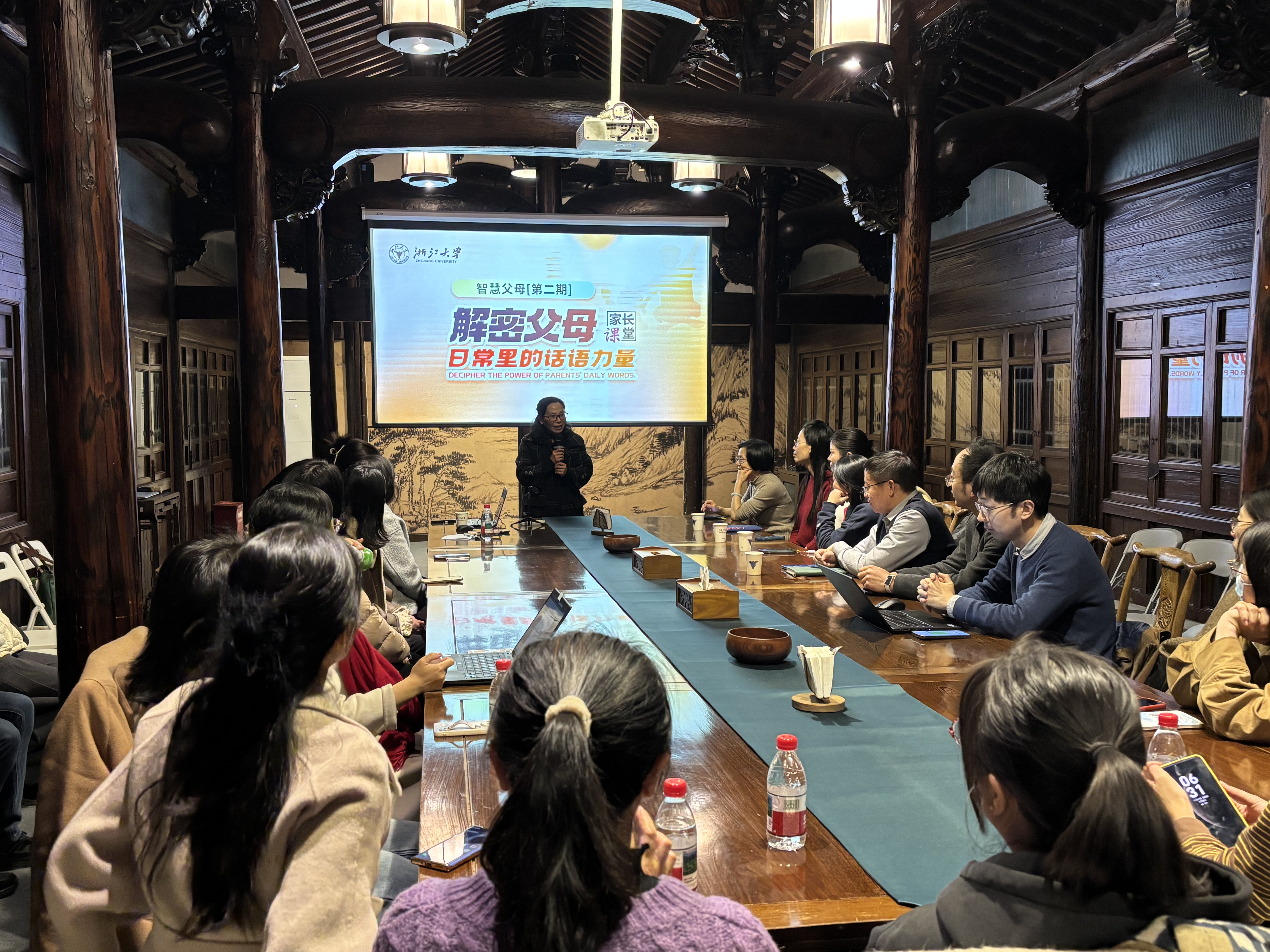 为更好地服务教职工,赋能家庭教育,家长课堂“智慧父母”系列课程于11月27日晚迎来第二讲,近40名教职工参与。本次课程特邀浙江大学博士,副研究馆员 ,高级家庭教育指导师吕慧平老师,以“解密父母日常里的话语力量”为主题,为在场的教职工家长们带来了一场轻松愉悦又富有实操性的智慧育儿之旅。