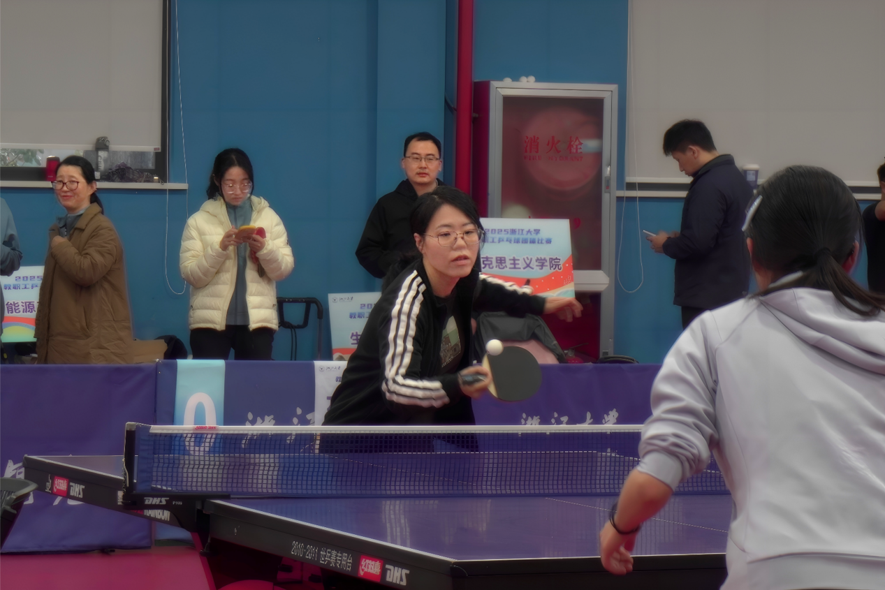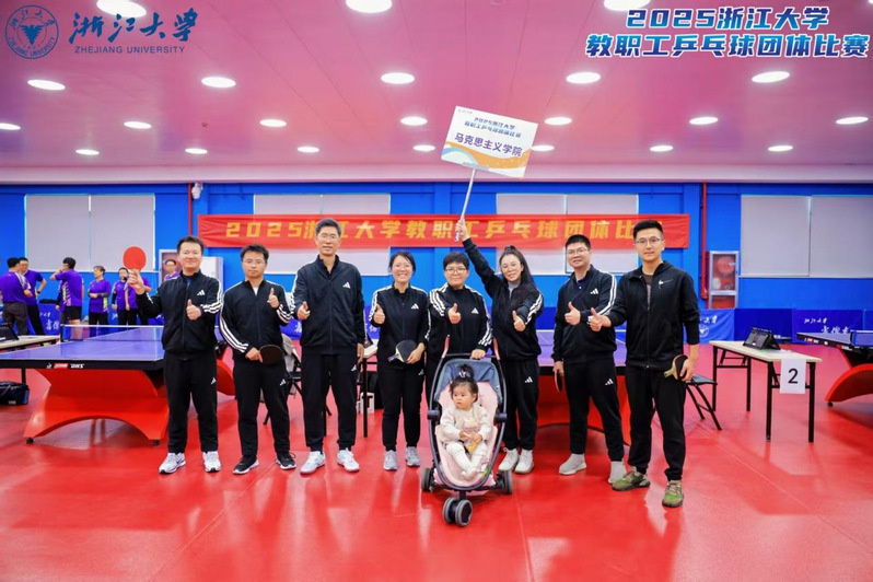 为响应全民健身号召,丰富校园文体生活,11月29日,2025年浙江大学教职工乒乓球团体乙级组比赛在玉泉校区新桥门乒乓球馆顺利开赛。马克思主义学院教职工乒乓球队参赛,与控制科学与工程学院、药学院、能源工程学院、公共管理学院等队伍同处于乙级B组,历经四轮小组循环赛的激烈角逐,最终以小组第四的成绩圆满收官。