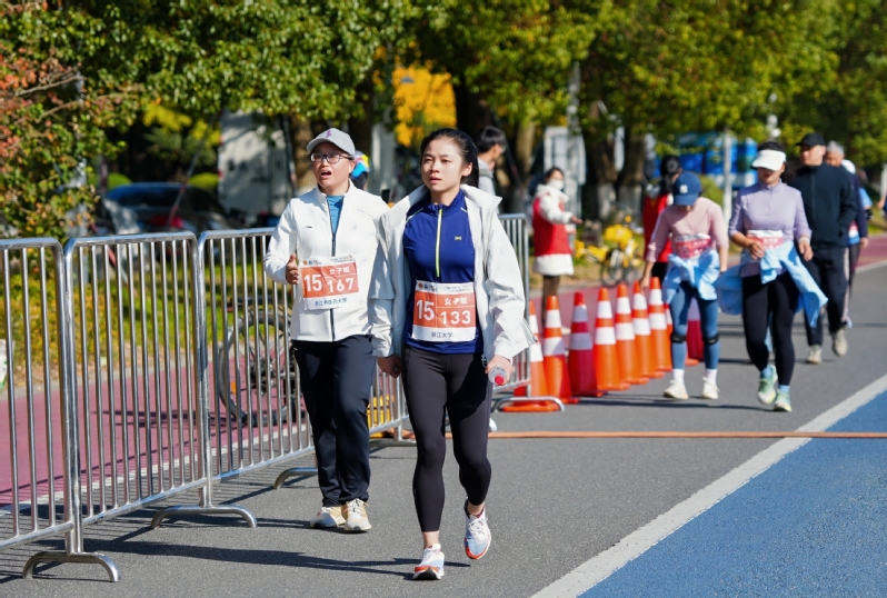 发令枪响的刹那,活力瞬间迸发。运动员们迈着矫健的步伐,沿着钱塘江畔的赛道奋勇疾驰。赛道之上,既有独自前行、享受静谧时光的身影,亦有两两结伴、并肩畅谈的挚友,更有三五成群、欢声笑语的团队。大家在健步途中尽情释放活力,在江风暖阳里深切感受运动的畅快与集体的温情。最终,我校斩获多项佳绩:团体项目六公里男子组第四名、六公里女子组第六名、十公里男子组第六名;个人项目中,孙亮在六公里男子组获得第七名。