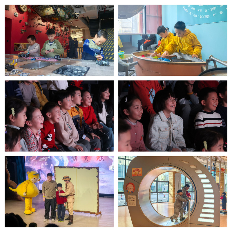 元・探索馆8000平方米的空间内设有四层20余个主题展区,横跨科学、艺术、运动等多元领域。场馆通过互动装置、科学秀等趣味形式,让孩子沉浸式解锁光影奥秘、力学原理、水循环等知识,是兼具趣味性与知识性的亲子探索胜地。活动现场,教职工与孩子们携手体验“水的旅程”“飞车工厂”“阿基米德广场”等特色项目,在亲手操作中探索科学玄机;随后走进元剧场观看科普主题展演,直观感受科学魅力,在生动演绎中拓宽认知边界。
