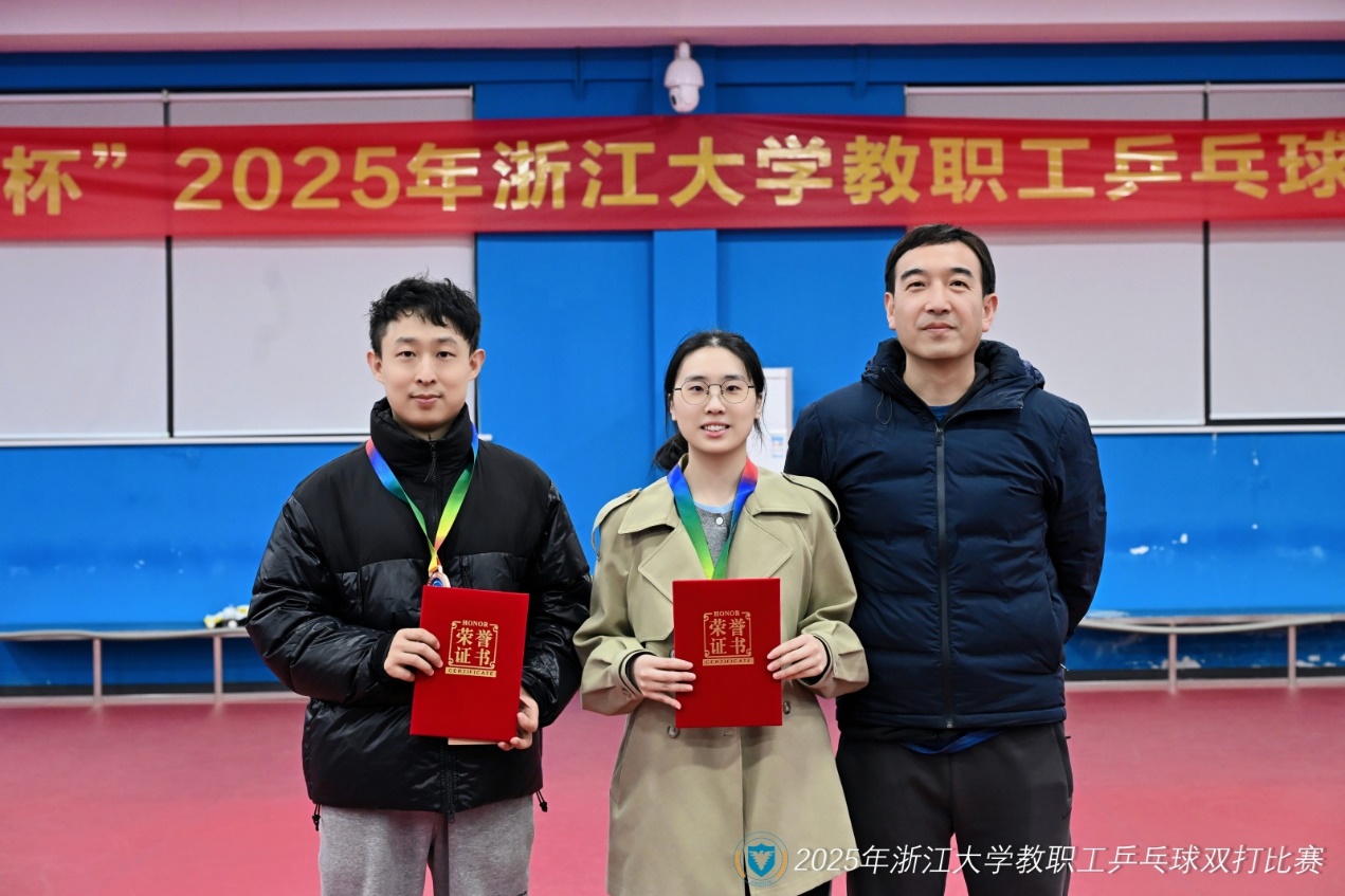 经过激烈角逐,来自建筑设计研究院的徐铨彪/芦瑛组合与陈利民/于竹组合分别获得冠、亚军。徐铨彪/芦瑛凭借默契配合与关键分的出色把握,以3:1战胜队友,成功卫冕。季军则由来自浙大四院和浙大二院的池哲勖/吴雨思组合获得。赛后,附属口腔医院尹述含主持了颁奖仪式,裁判长郭春雷宣布了比赛成绩。经济学院教授金元欢、教职工乒乓球协会会长徐铨彪、校机关何旭东与医学院教授陈建忠分别为前八名获奖选手颁奖。