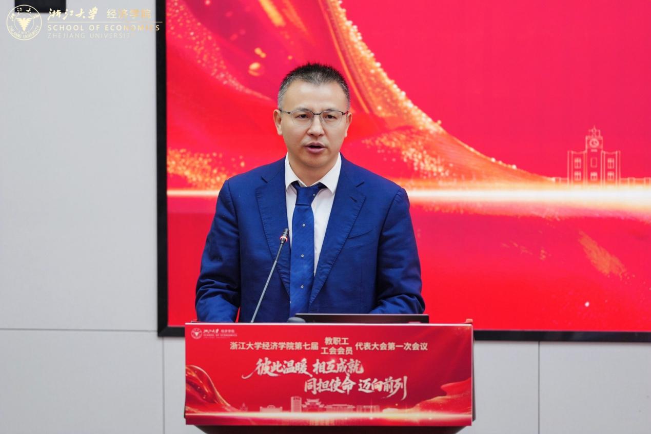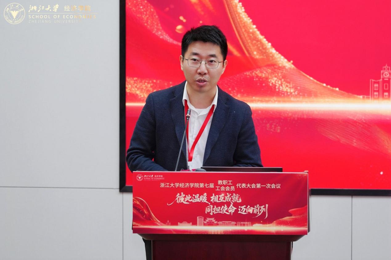 学院工会主席李济沅作题为《凝心聚力促发展 温情服务筑家园》的工会工作报告。他从强化党建引领、落实教代会职权、加强师德师风引领、做实维权服务工作、丰富文化建设、提升履职能力等六个方面总结了四年来的工会工作,并希望下一届工会心怀“国之大者”,情系教职工冷暖,践行使命担当,团结带领全院教职工在建设国内顶尖、世界一流的经济学院的新征程上奋勇争先。