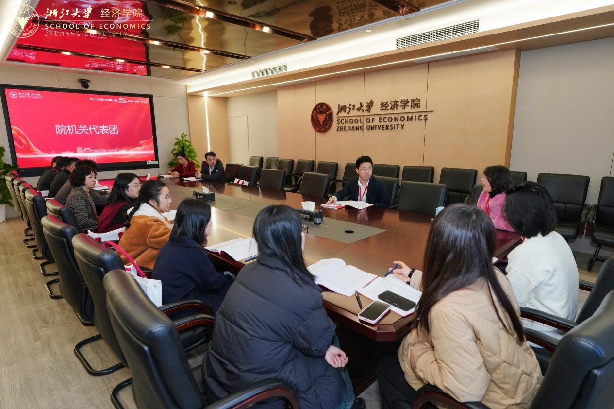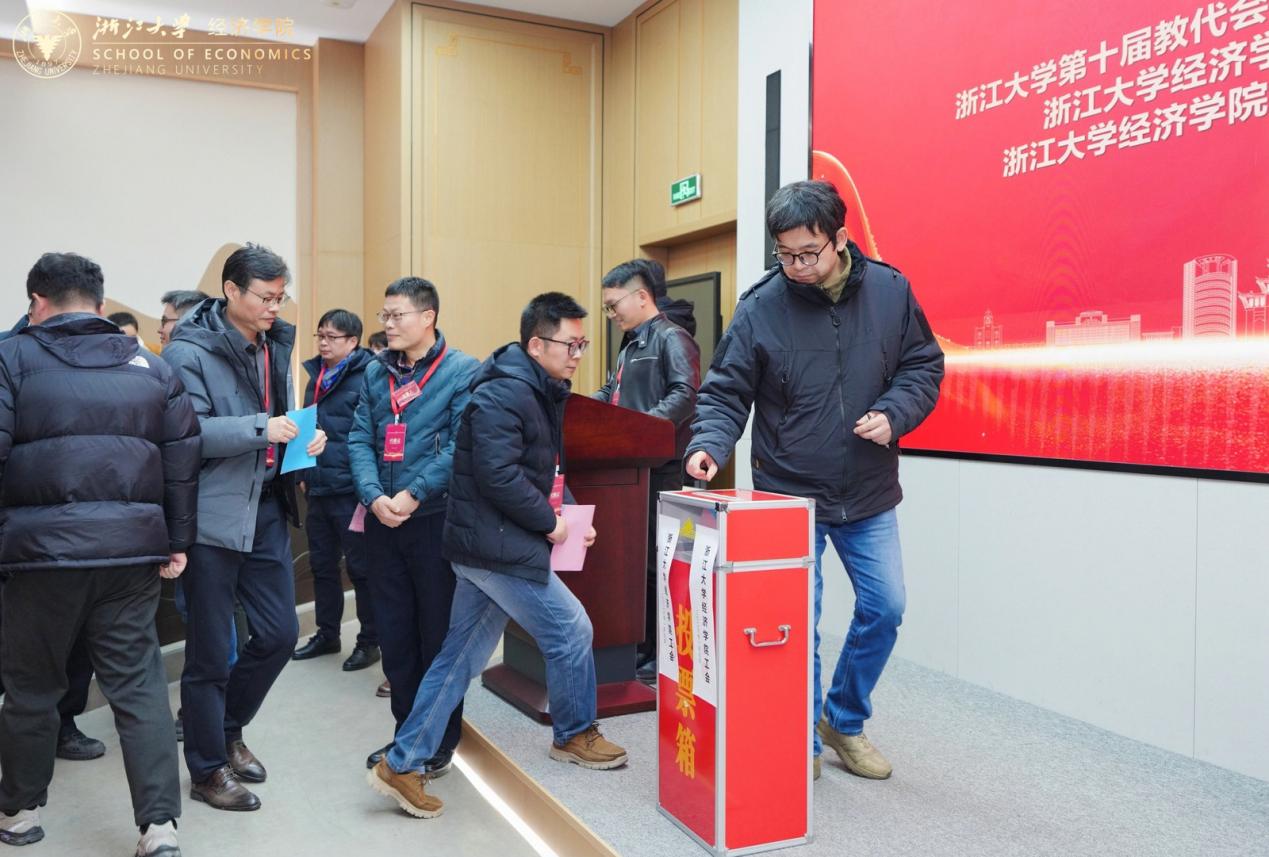 选举环节由经济学院工会副主席、党政办主任沈颖达主持,与会代表审议通过了《经济学院第七届教职工、工会会员代表大会选举办法》和监计票人名单等,选举产生了经济学院第七届教代会执委会、工会委员会委员,经费审查小组成员,以及学院出席学校第十届教代会、第二十四届工代会代表。