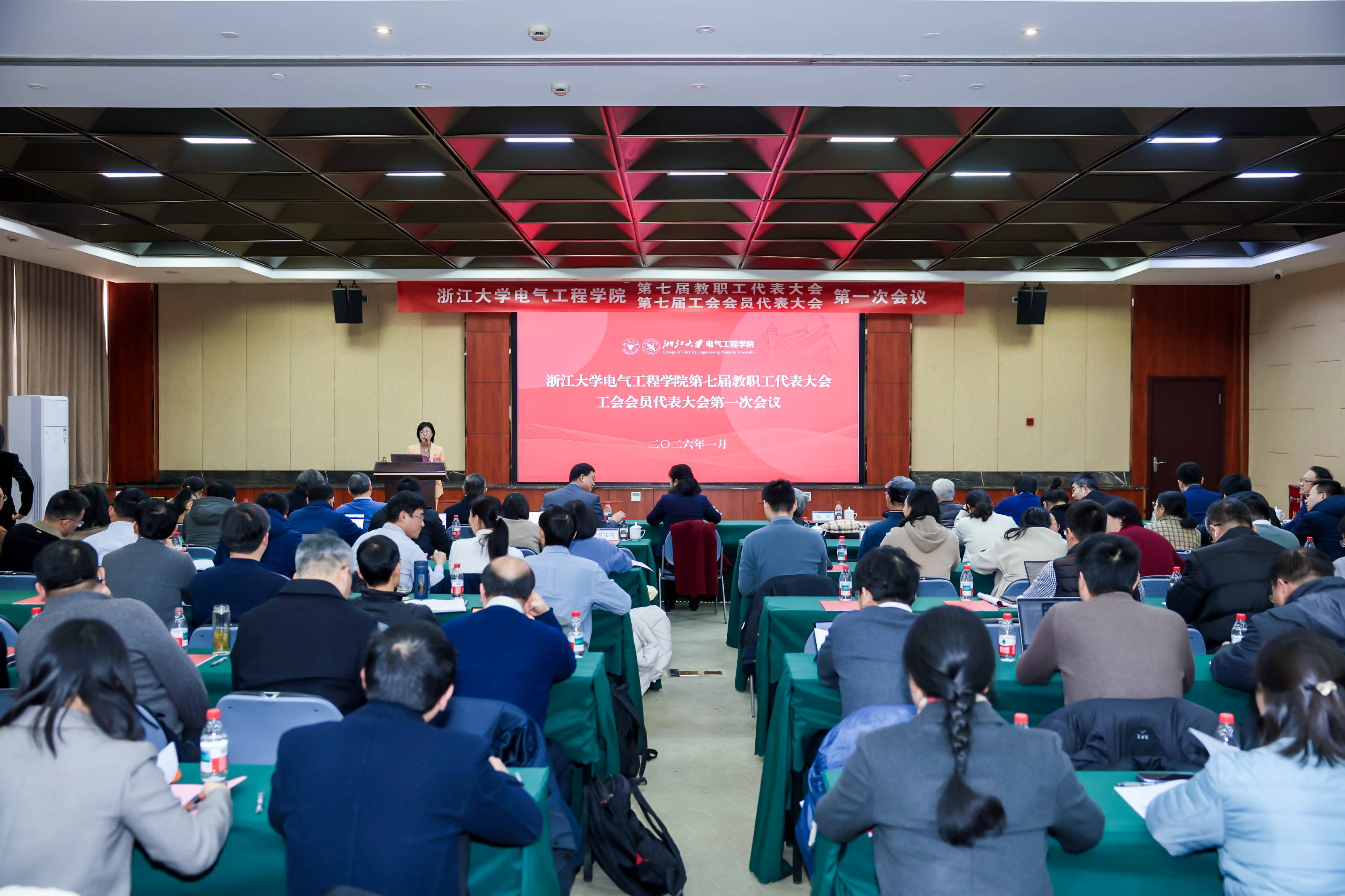 1月8日下午,浙江大学电气工程学院第七届教职工代表大会、工会会员代表大会第一次会议(简称“双代会”)在玉泉校区顺利召开。校工会副主席党颖、电气工程学院党委书记兼副院长江全元,学院副院长(主持工作)、党委副书记李虹,党政领导班子全体成员、“双代会”代表、特邀代表、列席代表参加了本次大会。会议由学院党委副书记、工会主席鲁小双主持。