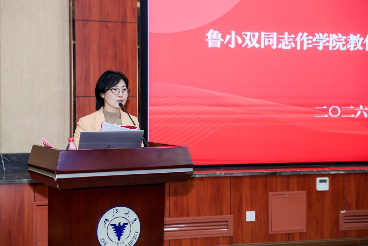 鲁小双作题为《凝心聚力担使命 实干笃行谱新篇》的第六届“双代会”工作报告。过去四年,在学校党委、行政的领导和上级工会的指导下,学院工会始终牢牢把握新时代工会工作的政治方向,坚守初心使命、服务中心大局,与学院发展同频共振、与全院师生同向同行,紧扣立德树人根本任务,聚焦教职工急难愁盼问题,在政治引领、民主管理、教师发展、服务保障、自身建设等方面精准发力,为学院高质量发展注入了强劲动能。