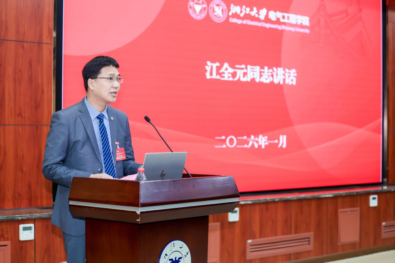 江全元在总结讲话中向新当选成员表示祝贺,并高度肯定了学院在“十四五”期间的丰硕成果,对历届工会及全院师生、校友的贡献致以衷心感谢。他在讲话中强调要坚持以生为本、聚焦科技攻关、突出人才强基、强化资源保障、守护安全底线,号召全体师生传承求是创新精神,以昂扬斗志、务实作风和开拓锐气,实干笃行、攻坚克难,共同开创学院办学水平和国内国际声誉双提升的新局面,为建设世界一流电气工程学科贡献力量。
