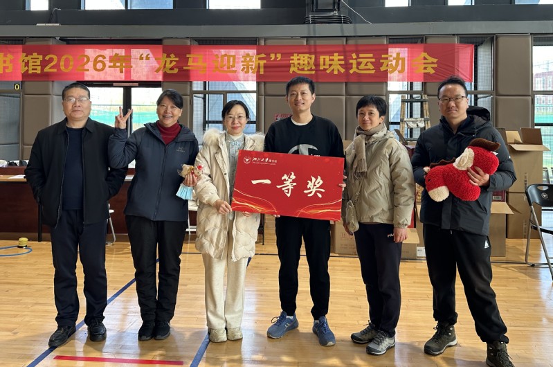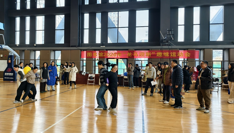 为提升教职工幸福感、获得感和归属感,丰富馆员文化生活,营造欢乐祥和的新春氛围,1月21日,图书馆2026年“龙马迎新”趣味运动会在紫金港亚运热身馆隆重举行。图书馆全体馆员参与其中,乐享盛会。