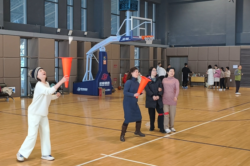 随后进行的“趣味气排球”将球场变成“欢乐战场”,高接低挡、飞身救球,比分交替上升,掌声此起彼伏。