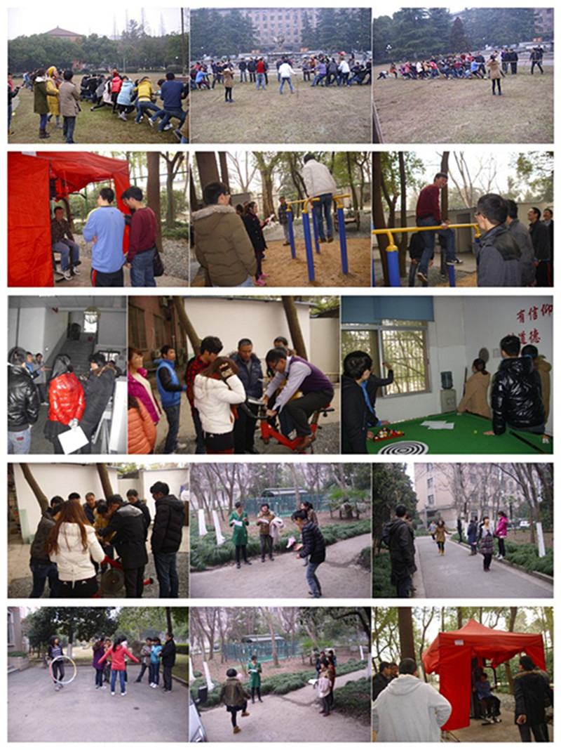 全民健身是指全国人民,不分男女老少,增强力量,柔韧性,增加耐力,提高协调,控制身体各部分的能力,从而达到身体强健。浙大农学院核农所与农药所以健身为契机,1月12日在华家池校区隆重举行了趣味运动会,比赛内容丰富有趣,包括9个项目:垫乒乓球、飞镖、健身自行车、双杠、健身器、跳绳、踢毽子、呼啦圈、拔河等,参赛运动员包括了两个研究所的全体师生员工。