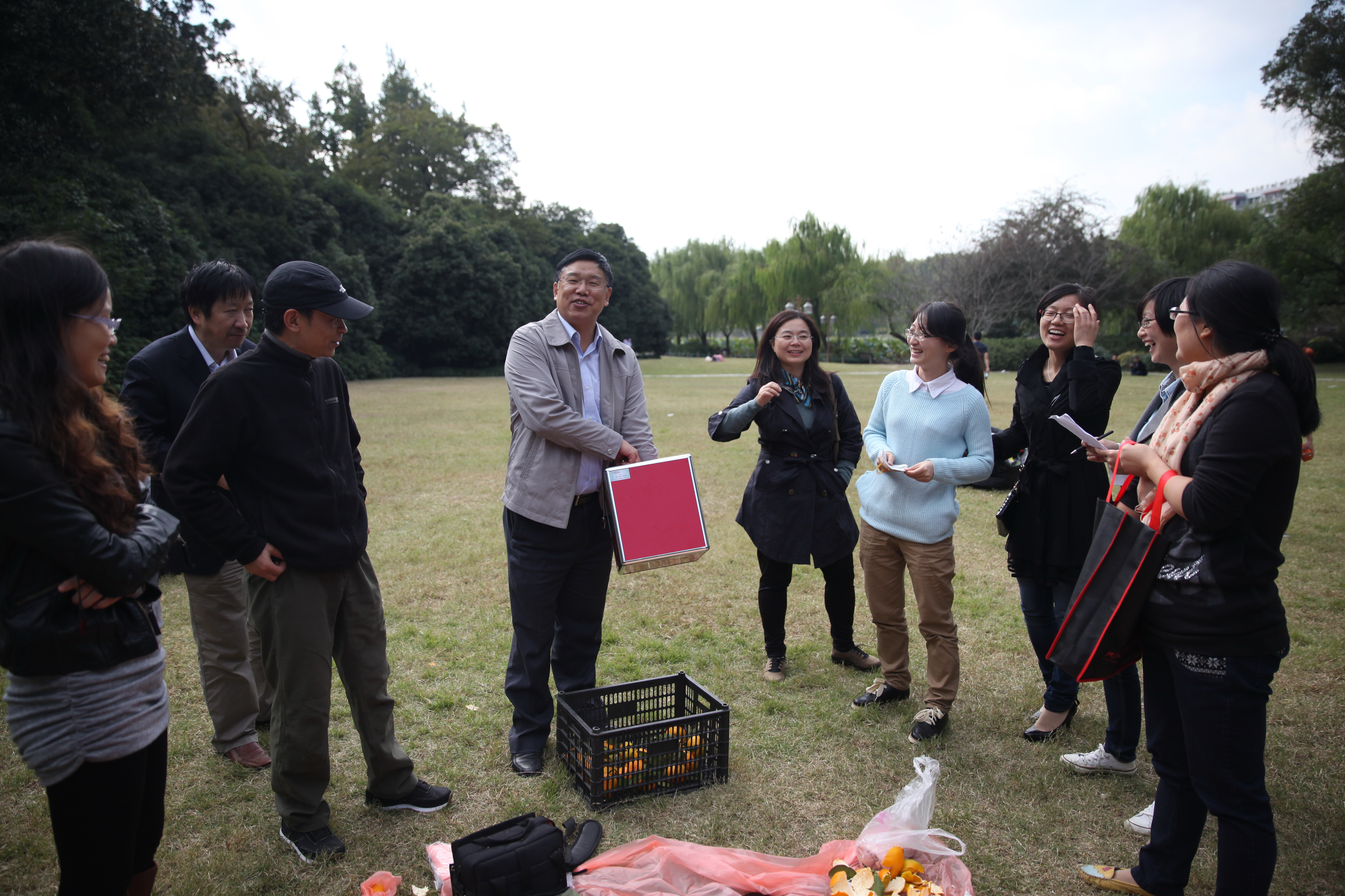 下午12点半起,教师们就陆陆续续地从办公室出来,从玉泉校区出发,沿着西湖走到孤山背面的草坪上。在终点休息处,工会准备了解渴的水果和可口的点心。老师们在草地上席地而坐,欣赏着半湖荷花,享受着温暖的阳光,谈论着生活中的家常点滴……为了给老师们带来惊喜,工会还设置了抽奖环节,给参加的老师们都带去好运。
