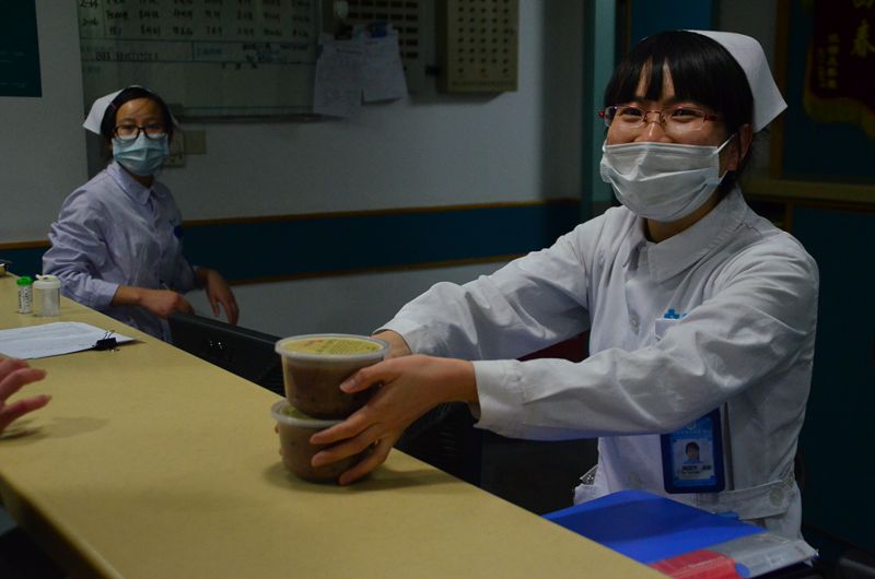 晚上7:15,20余名工作人员便在医院食堂集合,开始搬运将要送往各楼层科室的腊八粥,尽管夜里下着小雨,寒风阵阵,但大家的心都无比愉悦且温暖。7:30左右,三个小分队兵分三路带着真诚的问候走进各个病区:电梯一层一层的停,一份一份的腊八粥从工作人员的手中递到值班同事的手上,温暖的眼眸迎接真诚的笑脸,“辛苦了”、“谢谢”这些最朴实的问候在你我间显得越发亲切。