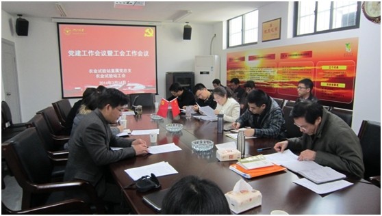 2014年3月14日下午,农业试验站召开党建工作暨工会工作会议。直属党总支书记斯赵�主持会议,党总支委员,各支部书记、支委,各部门、各分站负责人,工会主席、工会委员、工会经审小组成员、工会小组长参加了会议。