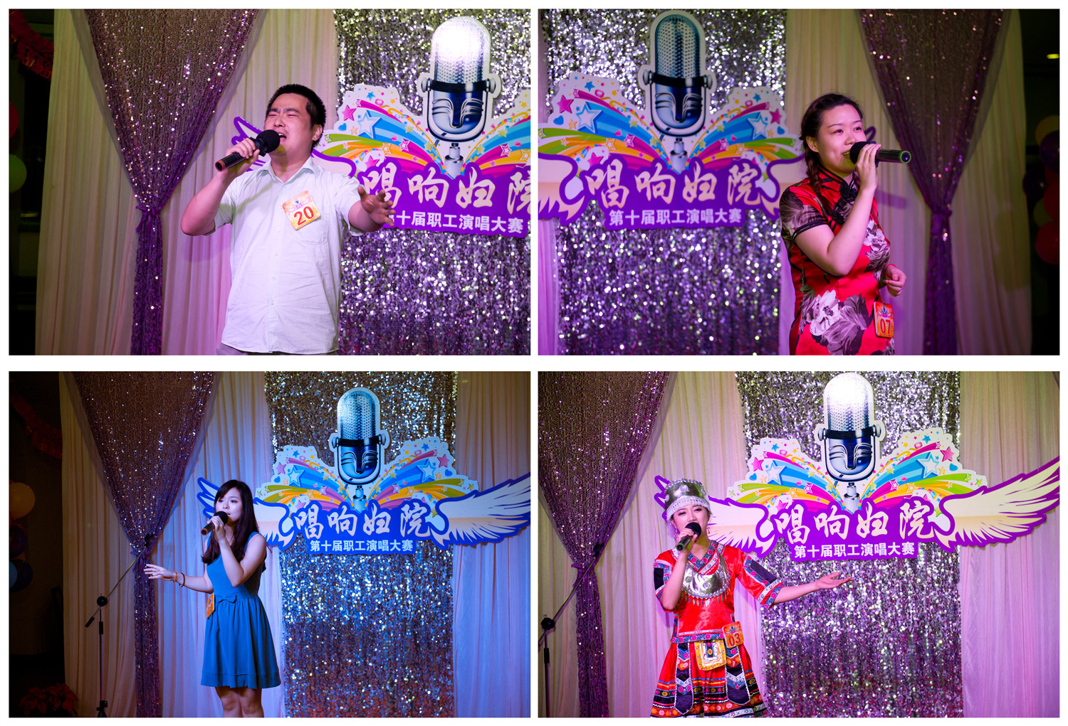 这次浙江大学医学院附属妇产科医院“唱响妇院”第十届职工演唱大赛决赛评委阵容不变,大众评委仍旧由各科主任、护士长担任,比赛共分三轮进行,囊括了小组PK、清唱等多种形式。13组晋级选手在决赛舞台上“各显神通”,为观众们献上了一场别具风格的视听盛宴。