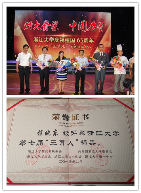 2014年9月29日晚,浙江大学在紫金港剧场隆重集会,表彰第七届“三育人”先进集体和个人。校领导金德水、邹晓东、罗卫东、周谷平、罗建红、严建华、张宏建分别为获奖的先进集体和标兵颁发证书和奖杯。