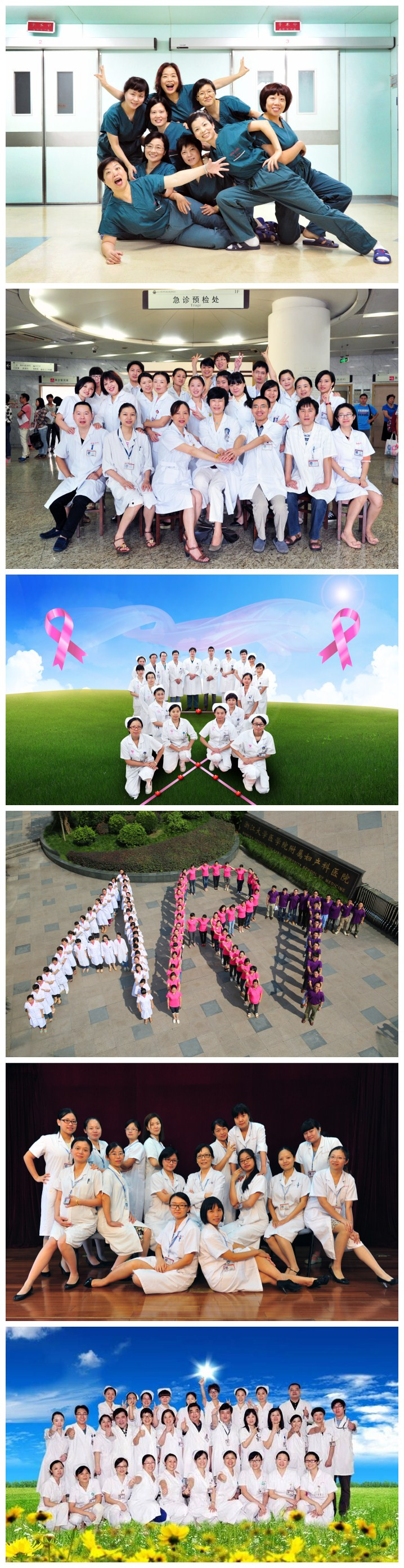 从初期几个科室先行响应,到后期大家争相拍摄,“全家福”集体照活动越发白热化。朋友圈、微博、微信公众平台……每一个渠道都被集体照覆盖。院内几个热门“取景地”每天都有欢声笑语传来,逢人打招呼之余不忘加一句:“你们集体照拍了吗?”。一张张集体照带着温馨与感动,带着团结与归属,带着希望和梦想飞进每个人的心田。