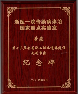日前,我院传染病诊治国家重点实验室荣获“第十三届全国职工职业道德建设先进单位”。这次评选活动致力于用优秀劳动者的职业道德精神和崇高道德追求引领和影响社会道德价值,推动全社会职业道德意识的提高。传染病诊治国家重点实验室获此殊荣,是浙一人的骄傲,凝聚着传染病诊治国家重点实验室主任李兰娟院士带领下所有医护人员、研究人员的辛勤付出。
