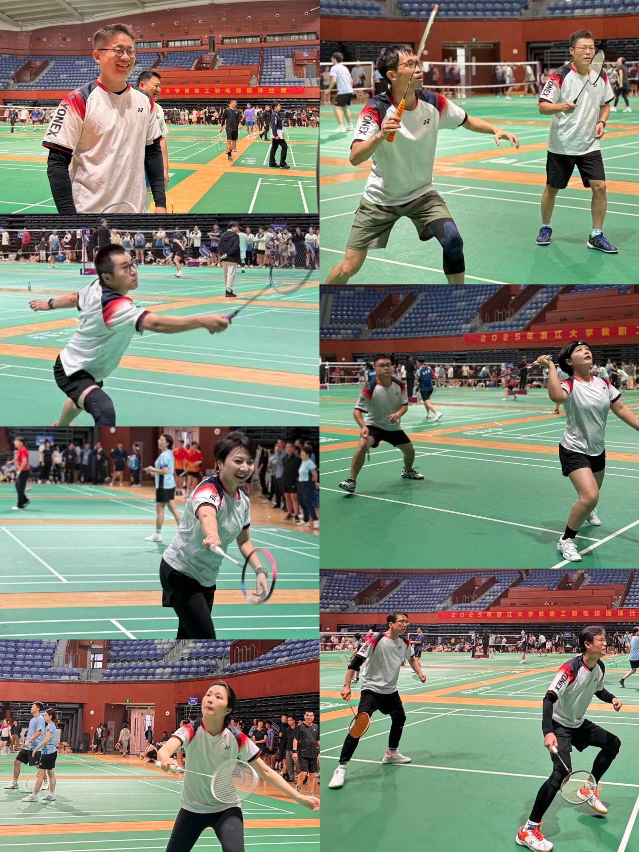 为积极响应全民健身号召,进一步丰富教职工文化生活,大力弘扬顽强拼搏、团结协作的体育精神,2025年11月1日,浙江大学教职工羽毛球团体赛在紫金港校区体育馆火热开赛。我院组织了以葛嬴、何樟勇、黄勇、陈亮、解恩泽、谢坤、杨亚洲、袁园、李婧、高心蕾十位教职工组成的参赛队伍出征赛场,工会委员朱梦婷担任领队。院工会主席李济沅携师生代表亲临现场,为选手们呐喊助威,营造了热烈的赛事氛围。