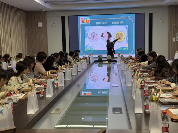 随后,手工环节在甄真美学艺术疗愈活动主理人吴连顺老师的带领下展开。参与者通过曼陀罗手工绕线,将注意力集中于指尖的创作,逐渐进入宁静、专注的状态。这一过程不仅让老师们从日常繁忙的工作中抽离出来,还在艺术的浸润中进一步放松心情,感受到内心的平衡与安宁。