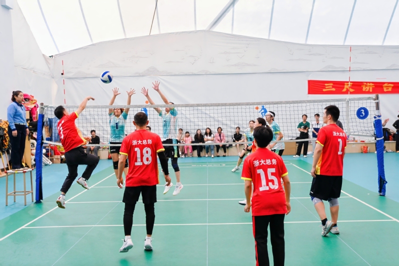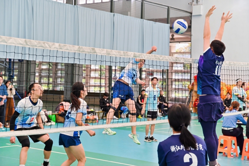 开幕式后,各参赛队伍迅速投入激烈角逐,赛场上队员们默契配合、奋勇拼搏,展现出高昂的竞技热情与团队精神。其中,浙江大学队表现亮眼,在小组赛及淘汰赛阶段以 “不失一局” 的强势战绩闯进决赛;而决赛更是焦点十足 —— 浙江大学与上一届冠军浙大城市学院展开金牌争夺战,全程紧张激烈、扣人心弦。首局浙江大学队状态稍缓,以 17:21 憾失一局;面对不利局面,队长陈国潮迅速调整策略,第二局果断变阵,一边加强发球攻击力,一边在接发球轮次严抓一传稳定性,队员们凭借默契配合以 21:16 扳平比分;第三局决胜局,浙江大学队开局陷入 0:3、1:5 的被动局面,但队员们沉心静气,在保证一攻成功率的基础上提升进攻果断性,蒋钱和金文韬两位主力攻手左右开弓、火力全开,最终以 15:12 逆转获胜,成功摘得冠军。