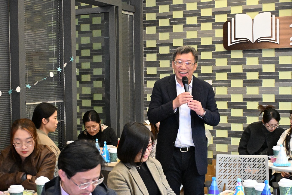 活动在欢声笑语中拉开帷幕。学院院长阚阅和党委书记王芳分别向在座的寿星们送上了亲切的生日祝福,并对新成员的加入表示热烈欢迎。生日寓意着生命的沉淀与升华,而入职则象征着全新的起点,“庆生”与“迎新”的美好结合,既是学院家文化的生动体现,也象征着教育事业薪火相传的温暖接力。讲话中肯定了本年度学院在科研创新与队伍建设中取得的扎实成绩,向全体教职工的辛勤付出致以衷心感谢的同时,也表达了对全体教师携手同心、共筑学院美好未来的真诚期待。