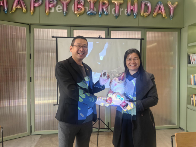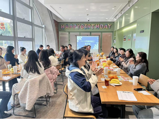 年末的这次集体生日会,不仅是为第四季度生日的寿星们送上祝福,更是对一整年辛勤耕耘的致敬,为忙碌的岁末增添了一抹温暖的亮色。王书记代表工会亲手为每一位寿星送上精心准备的生日贺卡。每一张贺卡都承载着学院工会对老师们诚挚的生日祝福与辛勤工作的由衷感谢。老师们接过贺卡,脸上洋溢着笑容,倍感温暖与关怀。