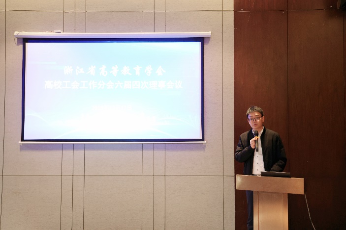 为深入学习贯彻习近平总书记关于工人阶级和工会工作的重要论述,紧扣高校改革发展趋势,凝聚工会理论研究与实践创新合力, 12月17日,浙江省高等教育学会高校工会工作分会六届四次理事会在台州召开。浙江省总工会二级巡视员、省教育工会主席王玉庆,省教育工会副主席潘磊,高校工会工作分会理事单位代表40余人参加会议。